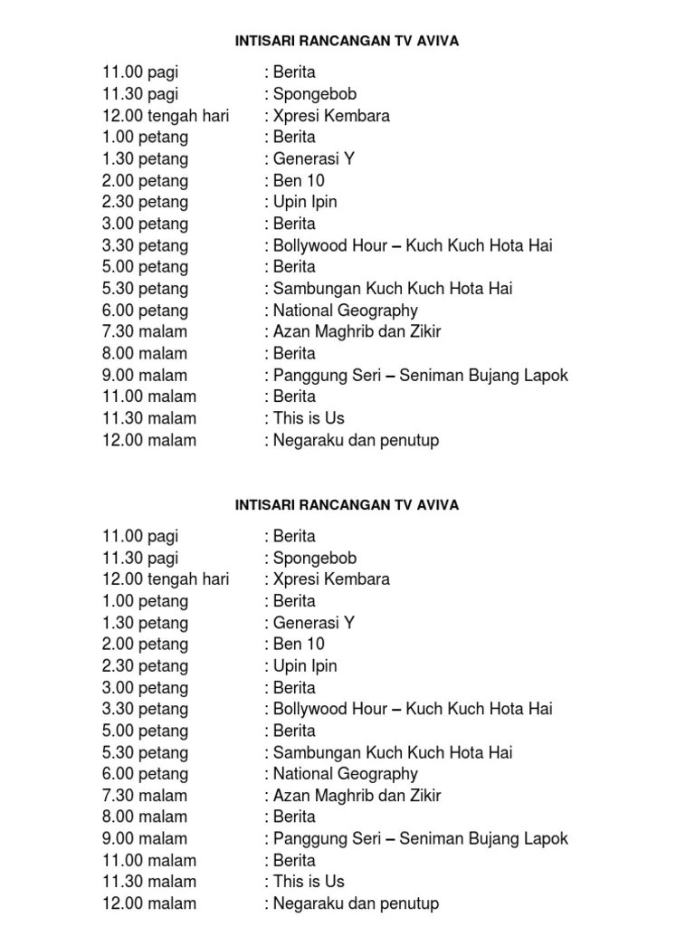 This is a list of television programmes broadcast by rtm tv2 malaysia either currently broadcast, repeat broadcast and formerly broadcast on rtm tv2 . Lagu cinta kita musim 3. Intisari rancangan tv2 hari ini. Susunan rancangan tv pendidikan di didiktv kpm, tv okey rtm & astro tutor. Assalamualaikum, salam sejahtera dan selamat pagi malaysia. Berikut ialah senarai rancangan televsiyen yang disiarkan atau pernah disiarkan. Polisi keselamatan siber · penafian · dasar privasi · footer ios icon. Tonton, most popular, latest, live, premium, shows, movies, channels, tv3, 8tv, ntv7, tv9.